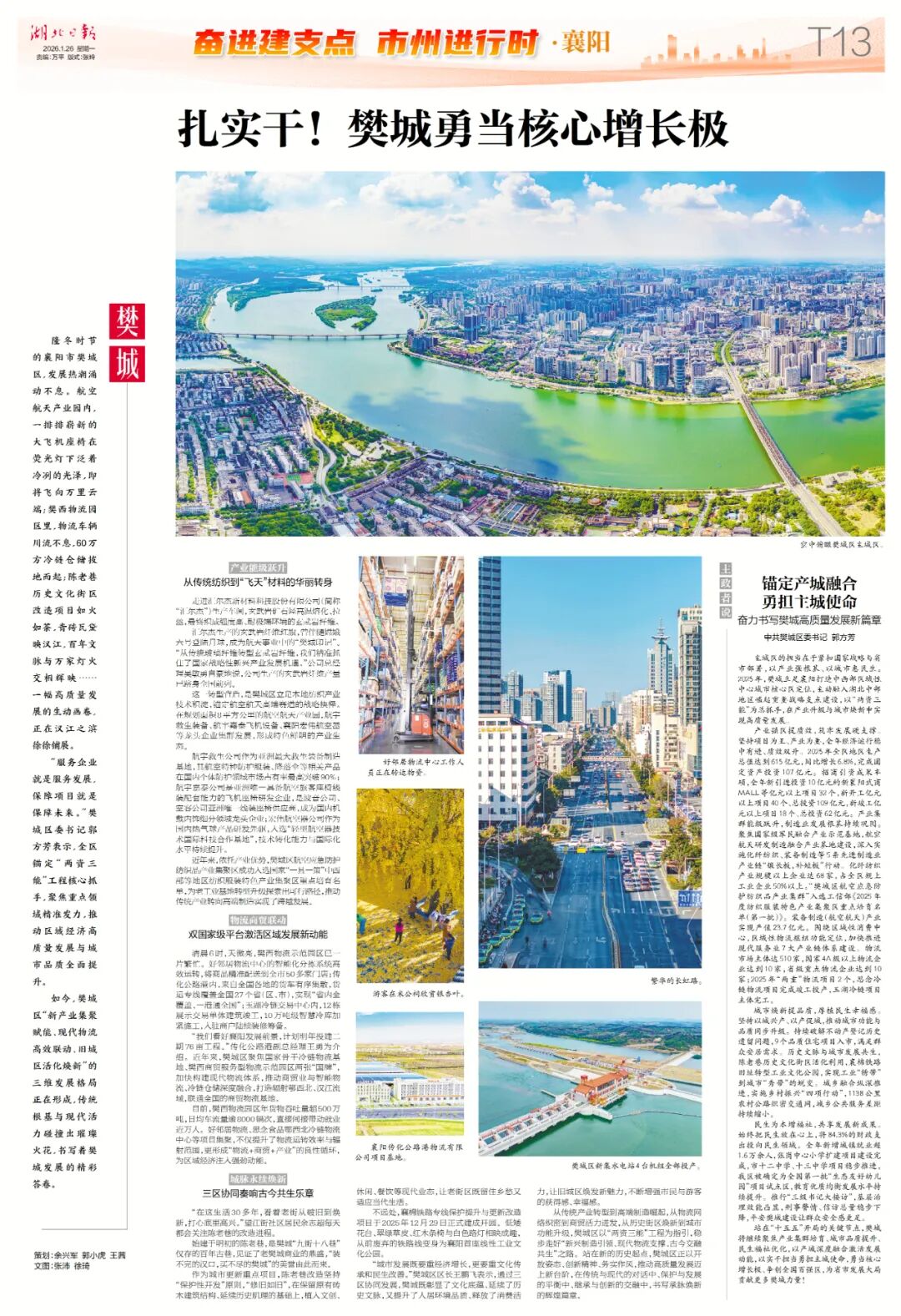 如今,樊城区“新产业集聚赋能、现代物流高效联动、旧城区活化焕新”的三维发展格局正在形成,传统根基与现代活力碰撞出璀璨火花,书写着樊城发展的精彩答卷。