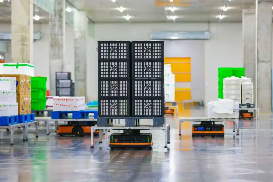 好邻居生鲜物流配送中心内,机器人正在自动分拣